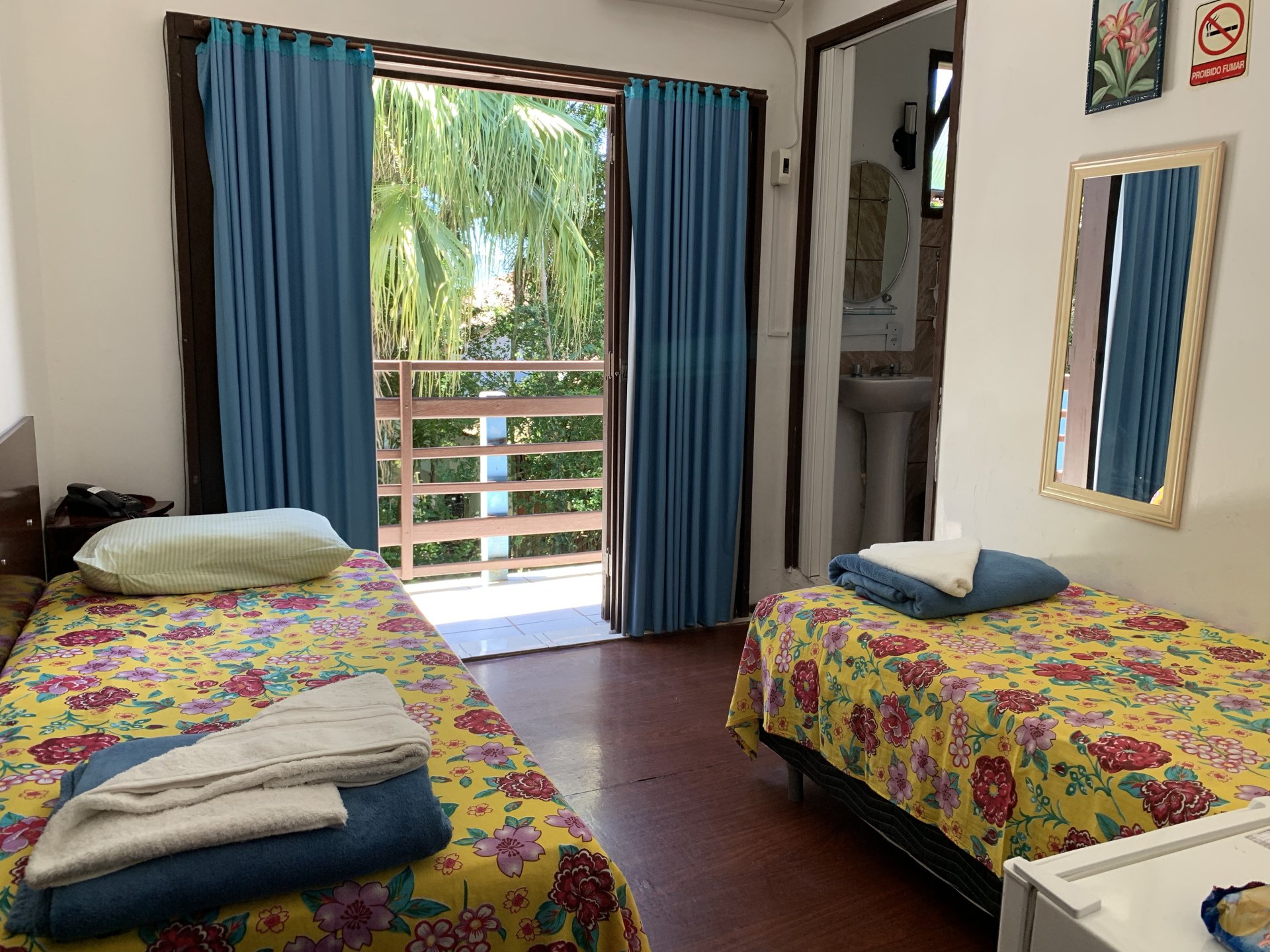 Oferecemos aos nossos hospedes quartos e suítes com ar condicionado e ventilador, frigobar,wifi . Contamos com um coffee shop agradável e com uma vista espetacular da baia sul de Florianópolis.